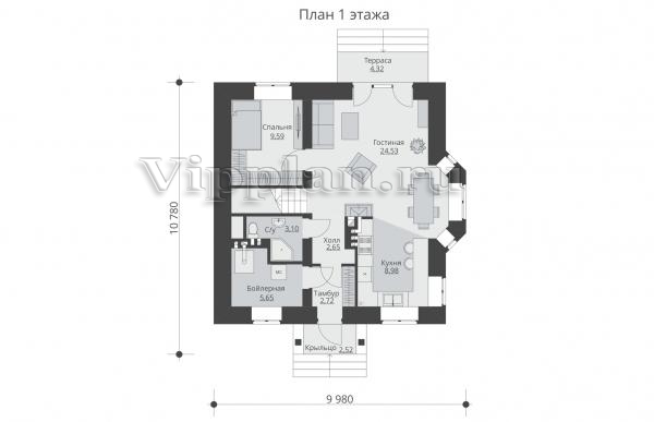 | Размеры дома: | 10.78м×9.98м |