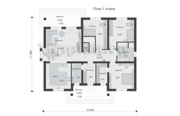| Размеры дома: | 11.98м×15.08м |